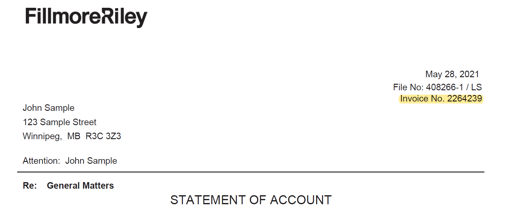 Note: Fillmore Riley LLP does not accept e-transfer.
