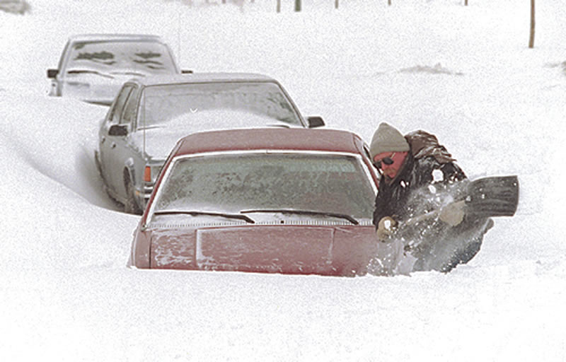 Winnipeg gets snowed in with the worst recorded blizzard in this century. Total accumulated snowfall: 48 cm (Friday to Tuesday). Previous record: 1966 - 38.1 cm snowfall. Duration of storm: 24 hours, Average wind speed: 60 km/h, gusting as high as 85 km/h.